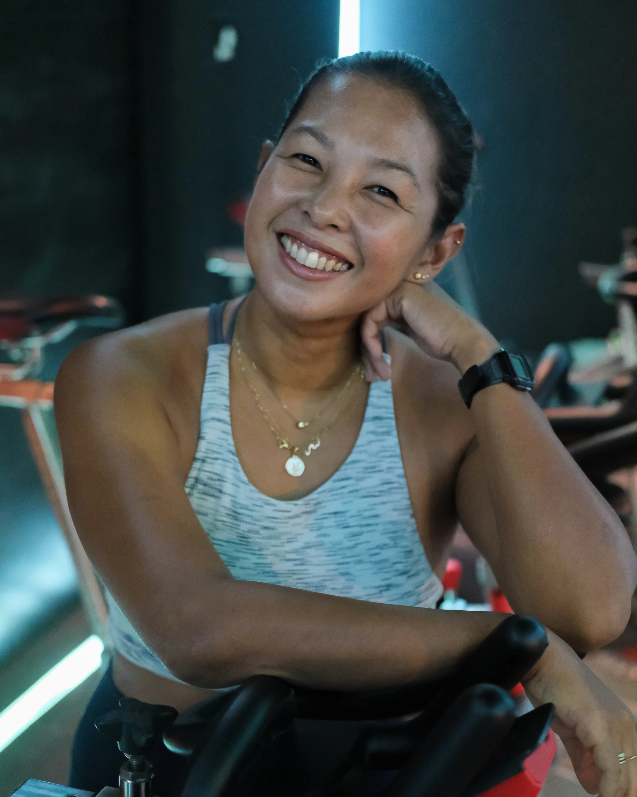 Mia has been with Saddle Row since 2015. Before she relocated to La Union, she was a head trainer handling Ride, Row and Realign programs. Now she teaches dance/fitness alternately in Manila and LUβ as Ride instructor for Saddle Row, as founder of Hiphop Hooray (a dance workshop for kids) and also as guest mobility/stretch coach for the Philippine Surfing Team. She continues to pursue her love for dance choreography and surfing while being a full-time dog mom to her American Bully Hiro.